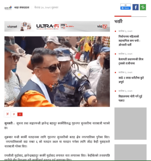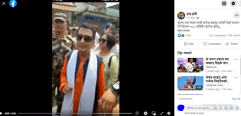 Further investigation found that when Karki went to the Barahakshetra Municipality to cast his ballot in the local election held on May 13, 2022, protesters had chanted slogans against him. His appearance in the polling booth wearing the same outfit in the video was confirmed by news from Thaha Khabar. Karki’s presence and chanting of slogans at polling booths was also confirmed by Khabar Hub’s show called “Dinbhar Aaja”.